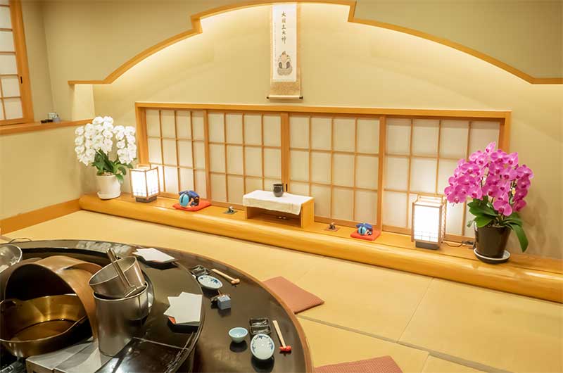 店内は、純和風のつくり。2階個室は掘りごたつ形式で、ゆったり天ぷらをお楽しみ頂ける雰囲気。一期一会の気持ちで、おもてなしをしております。接待や記念日、日常の会食など、シーンに応じてご利用ください。
